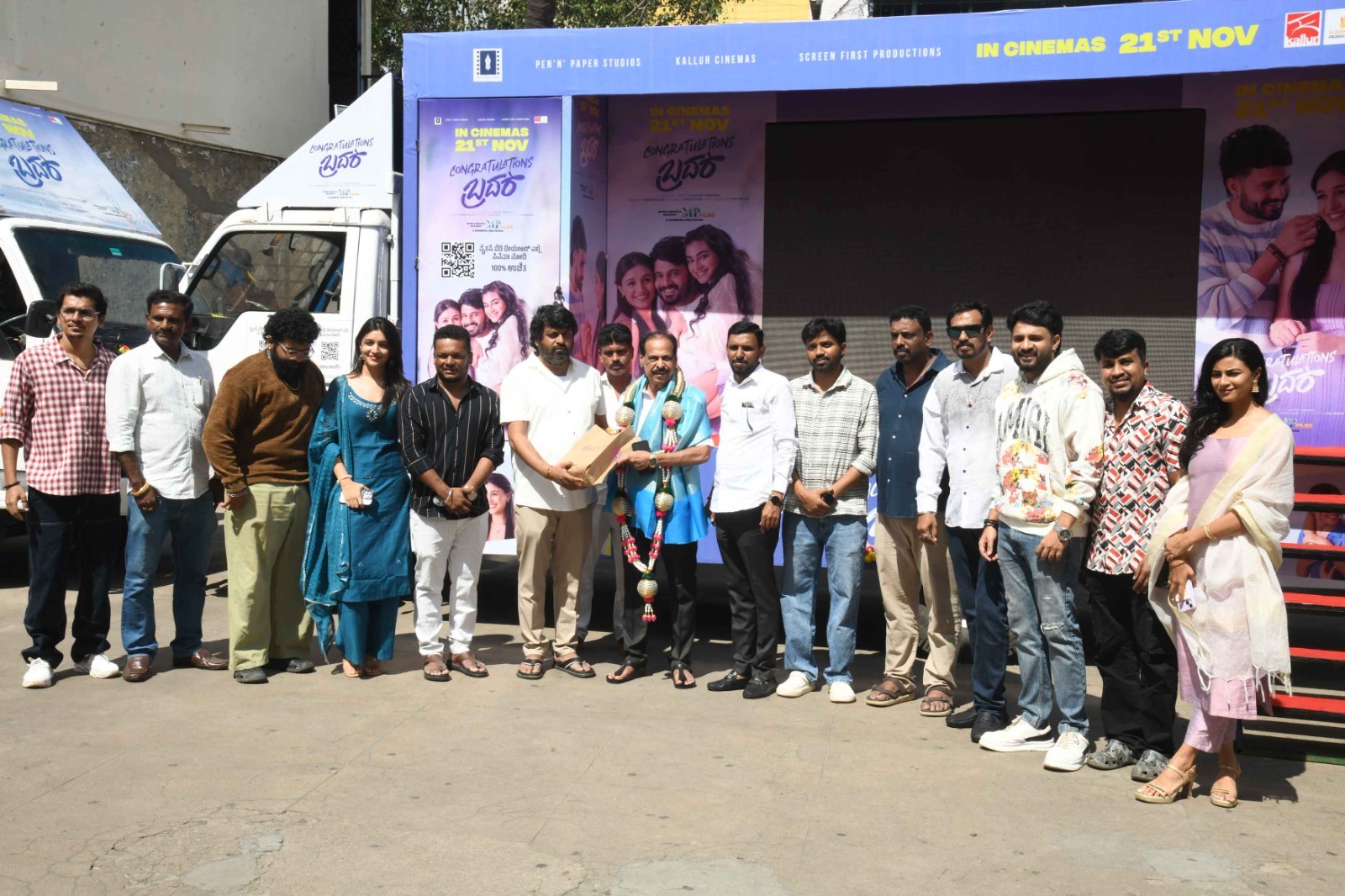 ಬೀದರ್ ನಿಂದ ಚಾಮರಾಜನಗರದವರೆಗೂ ಕರ್ನಾಟಕದ ಪ್ರತಿ ಜಿಲ್ಲೆಯಲ್ಲೂ ಚಿತ್ರತಂಡದಿಂದ ಬಿಡುಗಡೆ ಪೂರ್ವಭಾವಿ ಸಂಚಾರ .ಸಾಮಾಜಿಕ ಮಾಧ್ಯಮದಲ್ಲಿ ಸಾಕಷ್ಟು ಸದ್ದು ಮಾಡಿರುವ ಡೈಲಾಗ್ “Congratulations ಬ್ರದರ್”. ಈಗ ಈ ಜನಪ್ರಿಯ ಡೈಲಾಗ್ ಸಿನಿಮಾ ಶೀರ್ಷಿಕೆಯಾಗಿರುವುದು ಎಲ್ಲರಿಗೂ ತಿಳಿದ ಸಂಗತಿ.