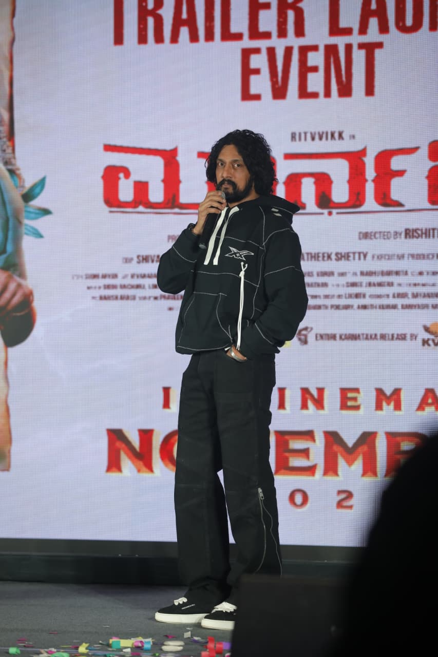 ನಿರ್ದೇಶಕ ರಿಶಿತ್ ಶೆಟ್ಟಿ ಮಾತನಾಡಿ, ನಾನು ಕಿಚ್ಚ ಅವರ ಅಭಿಮಾನಿ, ಕಿಚ್ಚ ಸರ್ ಹಾಡುಗಳಿಗೆ ನಾನು ಸ್ಕೂಲ್ ಹಾಗೂ ಗಣೇಶೋತ್ಸವ ಸಮಯದಲ್ಲಿ ಡ್ಯಾನ್ಸ್ ಮಾಡಿದ್ದೆ. ಈಗ ಅವರು ನಮ್ಮ ಚಿತ್ರದ ಟ್ರೇಲರ್ ಲಾಂಚ್ ಮಾಡಿದ್ದಾರೆ. ಇದು ಕನಸೋ? ನನಸೋ‌? ಎನಿಸುತ್ತಿದೆ. ಡೈರೆಕ್ಟರ್ ಆಗಬೇಕು ಎನ್ನುವುದು ನನ್ನ ಕನಸು, ಅದು ನನಸಾಗಿದೆ. ನನ್ನ ಚಿತ್ರಕ್ಕೆ ಬೇಕಾದ ನಾವಂದುಕೊಂಡ ಎಲ್ಲಾ ಕಲಾವಿದರು, ಟೆಕ್ನಿಷಿಯನ್ ಸಿಕ್ಕಿದಾರೆ. ಈಗ ಸಿನೆಮಾ ನವೆಂಬರ್ 28ಕ್ಕೆ ಬಿಡುಗಡೆ ಆಗುತ್ತಿದೆ. ಈ ಚಿತ್ರಕ್ಕೆ ಕಿಚ್ಚ ಹಾರೈಸಿದ್ದಾರೆ. ಇದು ದೇವರು, ದೊಡ್ಡವರು, ಹೆತ್ತವರ ಆಶೀರ್ವಾದ. ಎಂದರು.
